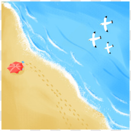 手绘俯视海边海浪沙滩背景素材