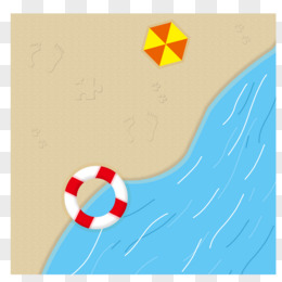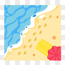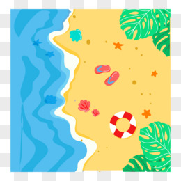 手绘卡通俯视沙滩海滩素材