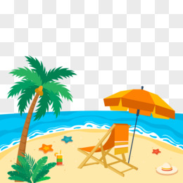 手绘沙滩椅遮阳伞免抠元素