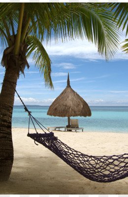 卡通手绘女孩做沙滩椅看电脑免抠元素