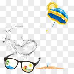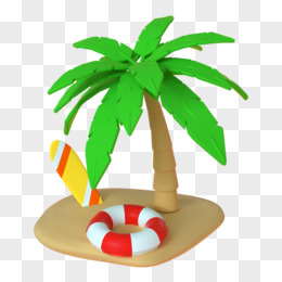 红色C4D卡通夏日海滩遮阳伞沙滩椅3d元素