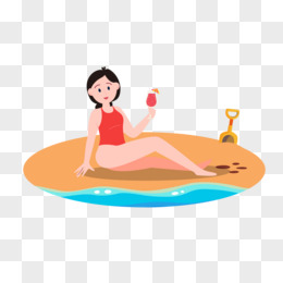 女孩沙滩玩耍度假人物元素