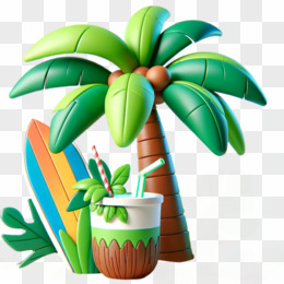 3D卡通立体夏日沙滩遮阳伞沙滩椅免抠元素