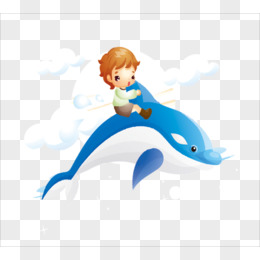 卡通手绘创意小海豚捡垃圾瓶免抠元素