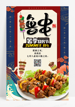 烧烤插画国潮风撸串海鲜碳烤美食海报