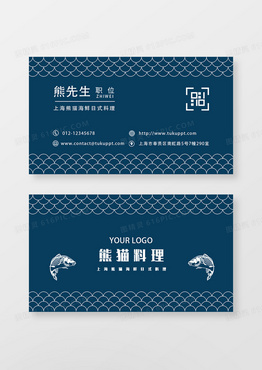 蓝色时尚简约日式料理餐饮名片