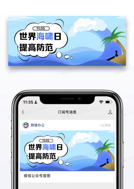 世界海啸日简约风世界海啸日蓝色简约风公众号首图