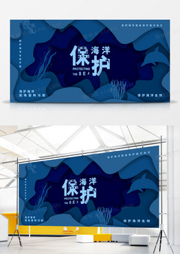 手绘 线条 海洋 青花瓷蓝 海洋动物 剪影 矢量 发光