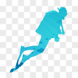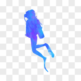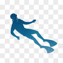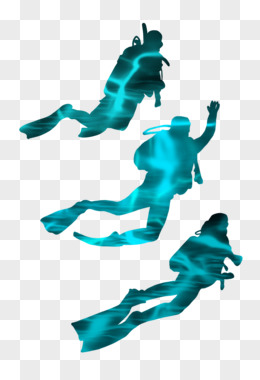 一组创意蓝色水纹潜水员剪影人物装饰素材