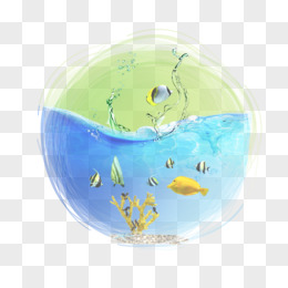 3D蓝色调鱼缸中的观赏鱼免抠元素