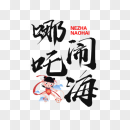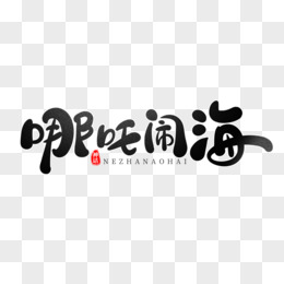 中式毛笔哪吒闹海艺术字设计素材