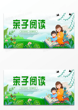 亲子阅读阅读文化父母陪伴孩子读书展板设计