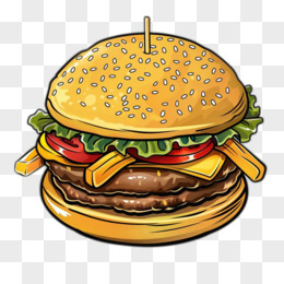 一组手绘写实汉堡炸鸡快餐食物套图元素