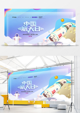 创意手绘卡通中国航天日展板设计