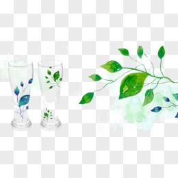 韩式水墨叶子插画