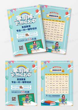 蓝色背景创意寒假班招生啦培训班招生宣传单设计