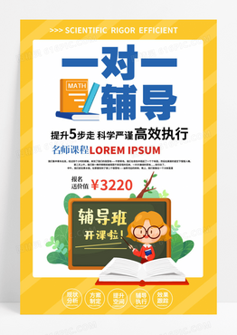 简约黄色背景卡通一对一辅导寒假培训班招生海报设计寒假辅导班