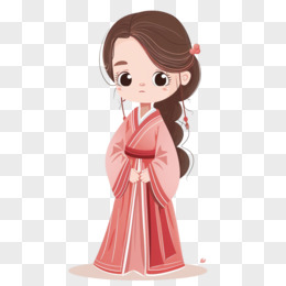 卡通手绘穿汉服的四个人打麻将免抠元素