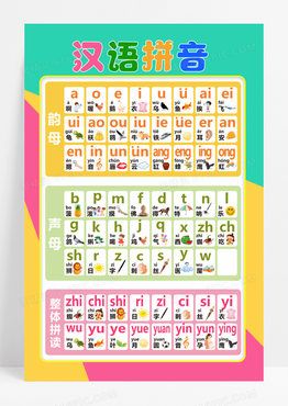 蓝色卡通汉语开学拼音字母宣传海报口诀表挂图