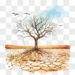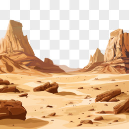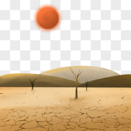 手绘卡通沙漠跟绿洲对比图免抠素材