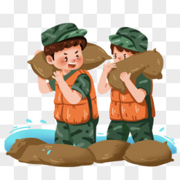 手绘卡通防汛抗旱救洪救灾抢险场景素材
