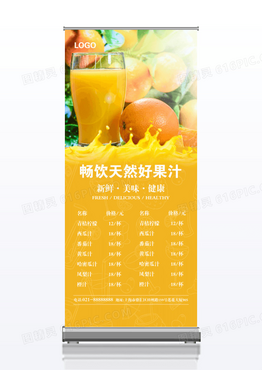 水果展架易拉宝海报 天然好多汁x展架 菜单
