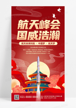 国潮风航天峰会国威浩瀚航天科技手机海报