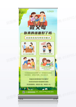 绿色卡通做父母你真的准备好了吗家庭教育展架易拉宝