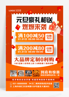 橙色简约风2024元旦好礼相送爆款来袭促销活动手机文案海报设计