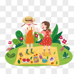 卡通手绘免抠好朋友一起野外篝火聚会素材