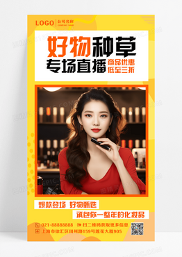简约好物种草直播推荐优惠活动手机海报手机文案海报