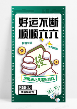 好运不断麻将专场绿色发财手机宣传海报
