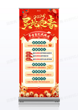 红色2025蛇年灵蛇迎春五重豪礼大放送促销展架易拉宝