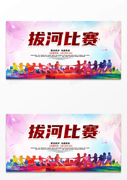 简约拔河比赛聚沙成河为赢而战拔河比赛展板