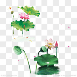 手绘荷叶荷花古风素材