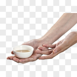 一手托茶碗一手请