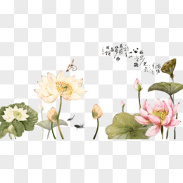 一组手绘中式水彩植物系列月份标题套图系列一素材