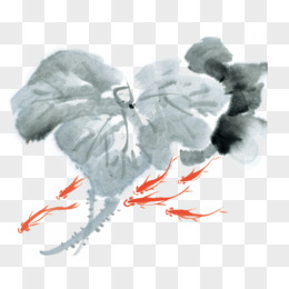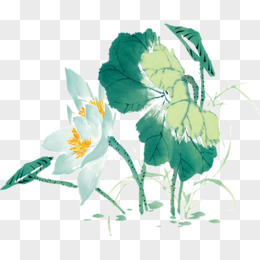手绘水墨荷花免抠元素