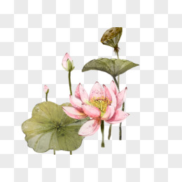 手绘荷花免抠素材