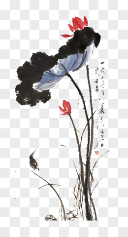 水墨荷花素材水墨花纹素材 科技感几何圈