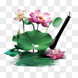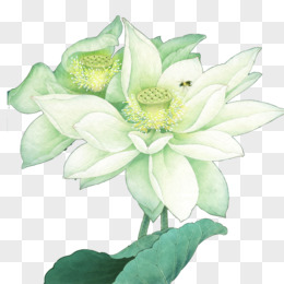 手绘卡通小清新水彩可爱绿色盆栽荷花夏至免扣