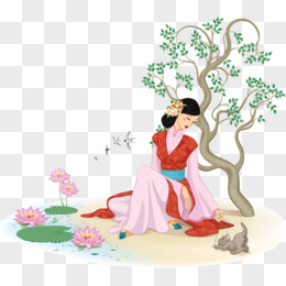 雨水之手绘卡通女孩拿着荷叶奔跑