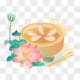 手绘新中式国潮青铜器皿西周鸟纹觥山水荷花微景观免抠元素