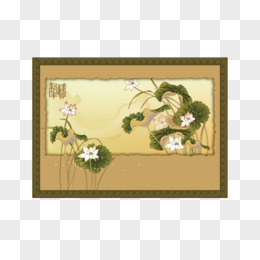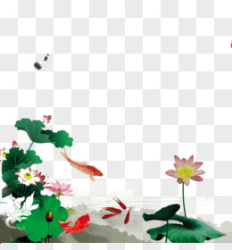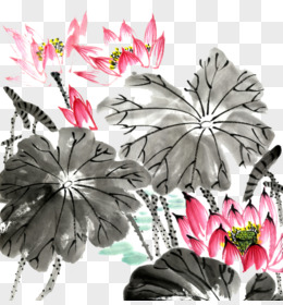 荷花莲花荷叶古风古建筑简笔画免抠元素