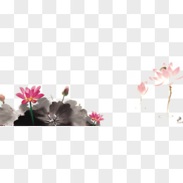 手绘卡通荷花荷叶局部晕染上色简笔画素材