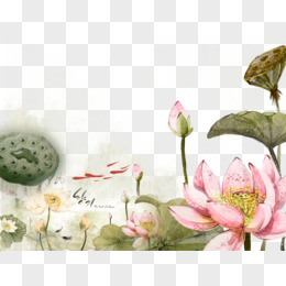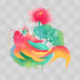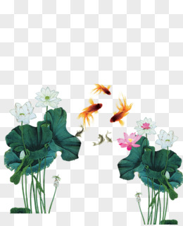 手绘荷花池莲花荷叶锦鲤免抠元素