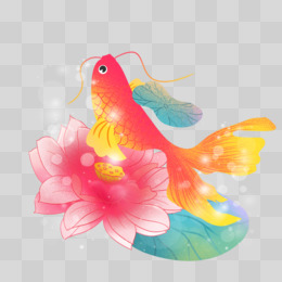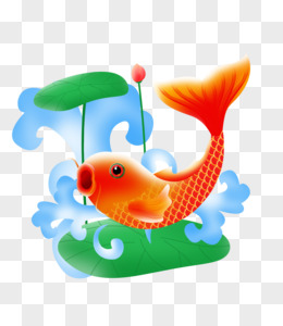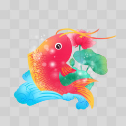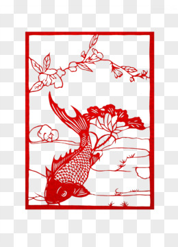 手绘剪纸锦鲤元宝荷花装饰免抠元素