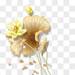 金色立体免抠荷花莲叶素材
