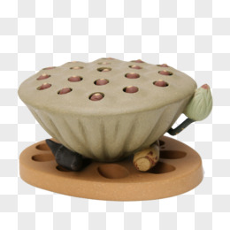 手绘国潮盆景莲花素材