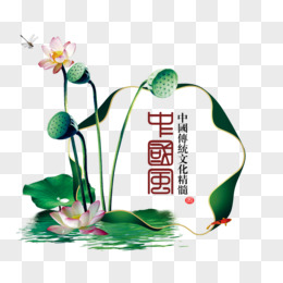 蓝绿色荷花莲藕荷叶插画简约手抄报